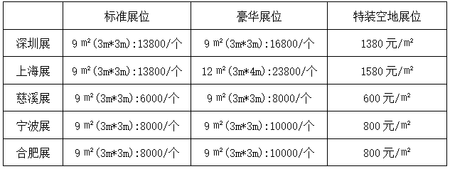 1、展览收费:(双开口标准展位加收10%)