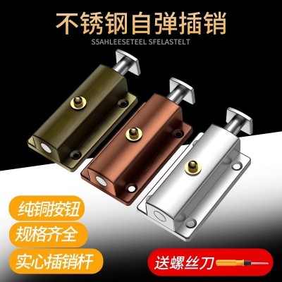 自动不锈钢弹簧插销卫生间门栓门扣木门 防盗门门锁左右明装插销