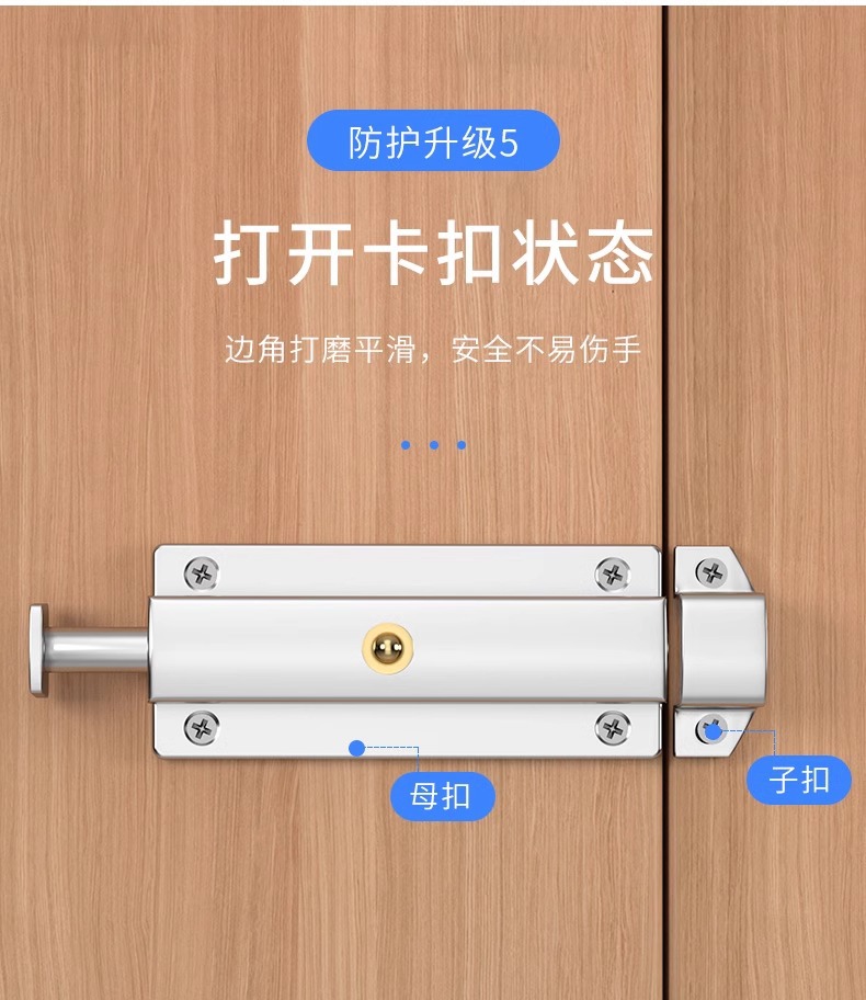 自动不锈钢弹簧插销卫生间门栓门扣木门 防盗门门锁左右明装插销