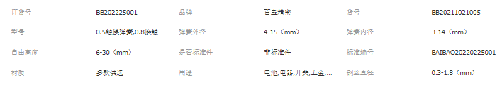 本网页所展示的有关【五金厂批发开关触摸弹簧电子按键弹簧家电塔状压簧智能电器小弹簧_弹簧_东莞市百宝精密部件有限公司】的信息/图片/参数等由中国机电设备产业网的会员【东莞市百宝精密部件有限公司】提供,由中国机电设备产业网会员【东莞市百宝精密部件有限公司】自行对信息/图片/参数等的真实性、准确性和合法性负责,本平台(本网站)仅提供展示服务,请谨慎交易,因交易而产生的法律关系及法律纠纷由您自行协商解决,本平台(本网站)对此不承担任何责任。您在本网页可以浏览【五金厂批发开关触摸弹簧电子按键弹簧家电塔状压簧智能电器小弹簧_弹簧_东莞市百宝精密部件有限公司】有关的信息/图片/价格等及提供【五金厂批发开关触摸弹簧电子按键弹簧家电塔状压簧智能电器小弹簧_弹簧_东莞市百宝精密部件有限公司】的商家公司简介、联系方式等信息。