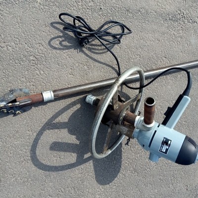 本厂生产的小型电动打井机头、随机配两种6.5厘米钢板钻头各一个,钻井时,两种钻头可任选一个,价格(请咨询客服了解价格)。也可另配钻杆,钻杆直径是32mm、一根长约1.8米、(请咨询客服了解价格)/根。