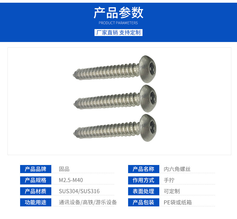 本网页所展示的有关【304不锈钢内六盘头自攻螺丝十字槽木牙螺钉防盗圆头自攻螺丝现货_螺丝_东莞市固品精密五金制品有限公司】的信息/图片/参数等由中国机电设备产业网的会员【东莞市固品精密五金制品有限公司】提供,由中国机电设备产业网会员【东莞市固品精密五金制品有限公司】自行对信息/图片/参数等的真实性、准确性和合法性负责,本平台(本网站)仅提供展示服务,请谨慎交易,因交易而产生的法律关系及法律纠纷由您自行协商解决,本平台(本网站)对此不承担任何责任。您在本网页可以浏览【304不锈钢内六盘头自攻螺丝十字槽木牙螺钉防盗圆头自攻螺丝现货_螺丝_东莞市固品精密五金制品有限公司】有关的信息/图片/价格等及提供【304不锈钢内六盘头自攻螺丝十字槽木牙螺钉防盗圆头自攻螺丝现货_螺丝_东莞市固品精密五金制品有限公司】的商家公司简介、联系方式等信息。