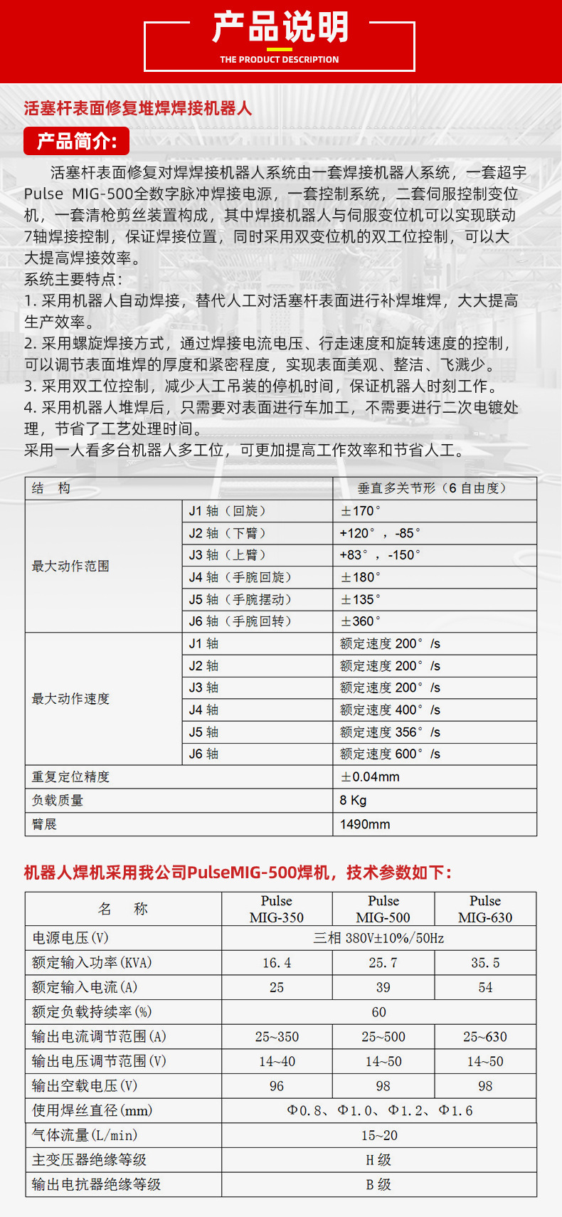 本网页所展示的有关【自动工业焊接机器人 焊接机器人自动 活塞杆焊接机器人_焊接机器人_湖南超宇科技有限公司】的信息/图片/参数等由中国机电设备产业网的会员【湖南超宇科技有限公司】提供,由中国机电设备产业网会员【湖南超宇科技有限公司】自行对信息/图片/参数等的真实性、准确性和合法性负责,本平台(本网站)仅提供展示服务,请谨慎交易,因交易而产生的法律关系及法律纠纷由您自行协商解决,本平台(本网站)对此不承担任何责任。您在本网页可以浏览【自动工业焊接机器人 焊接机器人自动 活塞杆焊接机器人_焊接机器人_湖南超宇科技有限公司】有关的信息/图片/价格等及提供【自动工业焊接机器人 焊接机器人自动 活塞杆焊接机器人_焊接机器人_湖南超宇科技有限公司】的商家公司简介、联系方式等信息。