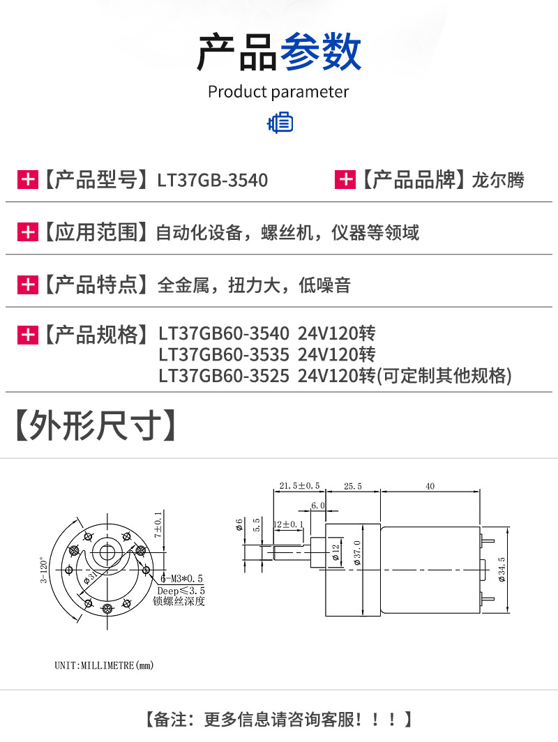 本网页所展示的有关【LT37GB-3540螺丝机减速装置 仪器无刷电机 自动化设备直流减速器_无刷直流电机_东莞市龙尔腾电机有限公司】的信息/图片/参数等由中国机电设备产业网的会员【东莞市龙尔腾电机有限公司】提供,由中国机电设备产业网会员【东莞市龙尔腾电机有限公司】自行对信息/图片/参数等的真实性、准确性和合法性负责,本平台(本网站)仅提供展示服务,请谨慎交易,因交易而产生的法律关系及法律纠纷由您自行协商解决,本平台(本网站)对此不承担任何责任。您在本网页可以浏览【LT37GB-3540螺丝机减速装置 仪器无刷电机 自动化设备直流减速器_无刷直流电机_东莞市龙尔腾电机有限公司】有关的信息/图片/价格等及提供【LT37GB-3540螺丝机减速装置 仪器无刷电机 自动化设备直流减速器_无刷直流电机_东莞市龙尔腾电机有限公司】的商家公司简介、联系方式等信息。