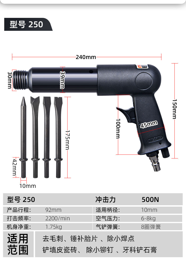 本网页所展示的有关【150/190/250工业级气动铲风镐 焊渣刹车片气铲气锹补胎风铲气锤_气铲_台州市卡赫气动机械有限公司】的信息/图片/参数等由中国机电设备产业网的会员【台州市卡赫气动机械有限公司】提供,由中国机电设备产业网会员【台州市卡赫气动机械有限公司】自行对信息/图片/参数等的真实性、准确性和合法性负责,本平台(本网站)仅提供展示服务,请谨慎交易,因交易而产生的法律关系及法律纠纷由您自行协商解决,本平台(本网站)对此不承担任何责任。您在本网页可以浏览【150/190/250工业级气动铲风镐 焊渣刹车片气铲气锹补胎风铲气锤_气铲_台州市卡赫气动机械有限公司】有关的信息/图片/价格等及提供【150/190/250工业级气动铲风镐 焊渣刹车片气铲气锹补胎风铲气锤_气铲_台州市卡赫气动机械有限公司】的商家公司简介、联系方式等信息。